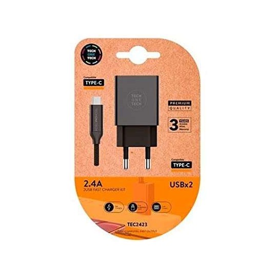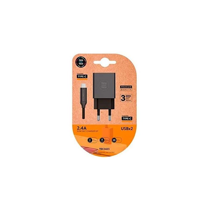 Caricatore a doppia parete TechOneTech + cavo da USB-A a USB-C da 1 m - rivestito in nylon intrecciato