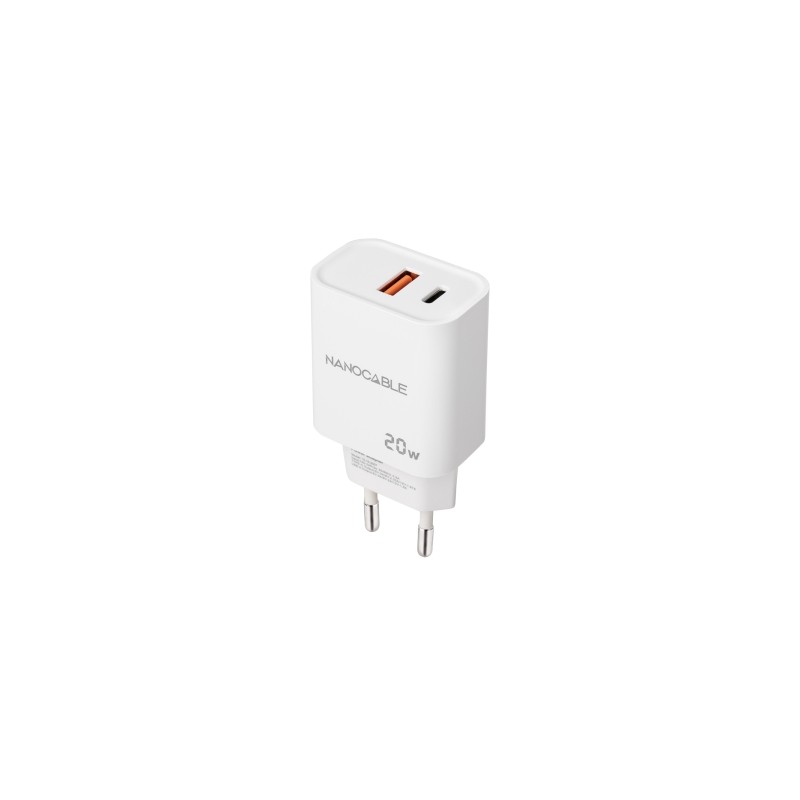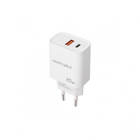 Caricatore da parete Nanocable USB-C/PD + USB-A/QC 20W - Bianco
