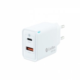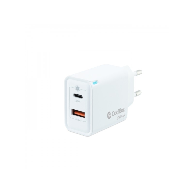Caricatore da parete Coolbox 30W QC3.0 + PD - USB-A + USB-C - Ricarica rapida - Tecnologia GaN - Colore bianco
