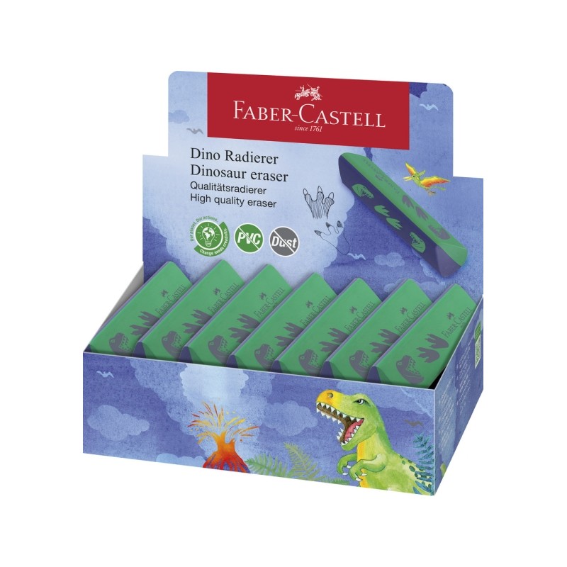 Faber-Castell Dinosaur Gomma senza PVC - Forma triangolare ergonomica - Senza residui - Gomma facile e pulita