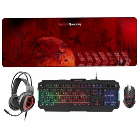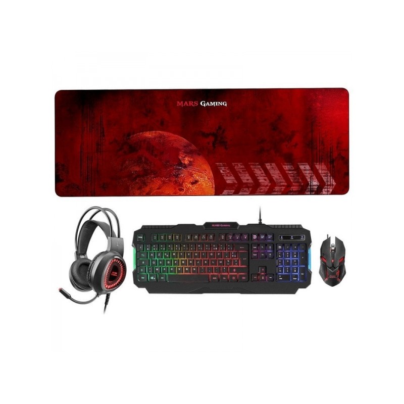 Il Mars Gaming MCPRGB2 Gaming Combo trasforma il vostro desktop in uno spettacolo di luci con la tastiera RGB Rainbow, il mouse e le cuffie RGB Flow. Proteggi il tuo PC con il tappetino per mouse dal design rosso XXL.