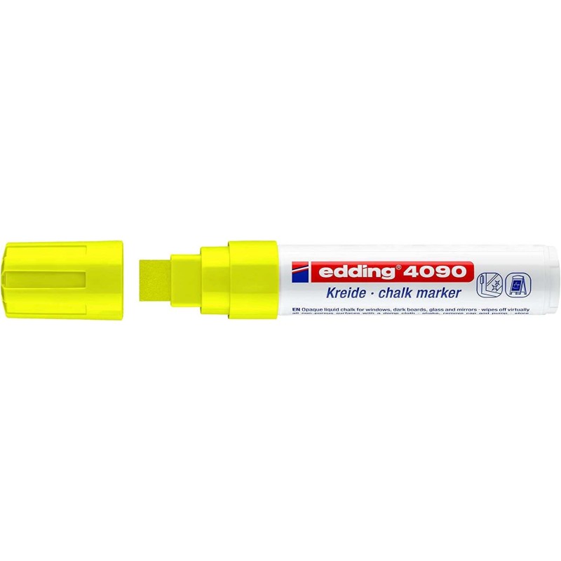 Pennarello a gesso liquido Edding 4090 - Punta a scalpello - Linea tra 4 e 15 mm - Odore neutro - Colore giallo neon