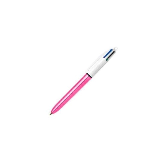 Penna a sfera retrattile Bic 4 Colours Shine - Pennino 1 mm - Tratto 0.4 mm - Inchiostro a base d'olio - Corpo rosa/bian