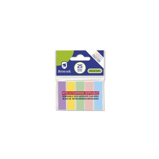 Confezione da 125 indici adesivi Bismark 45 mm x 12 mm - Colori pastello assortiti