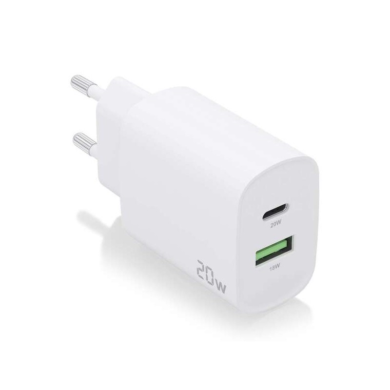 Caricabatterie Aisens 20W - 1xUSB-C PD3.0 - 1xUSB-A QC3.0 - Colore bianco