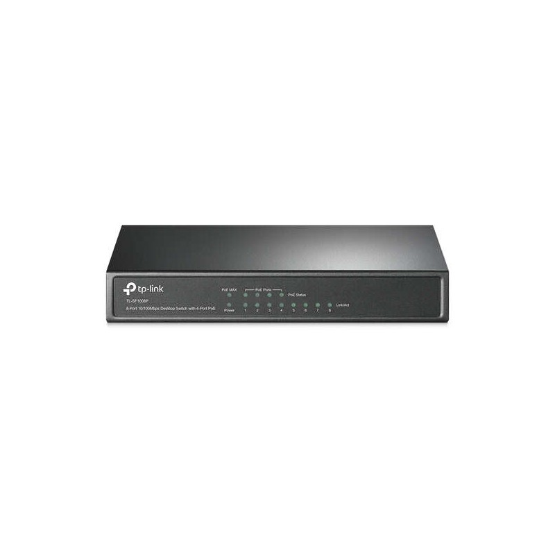 Switch da tavolo con 8 porte a 10/100 Mbps Power over Ethernet. 4 delle 5 porte RJ45 con negoziazione automatica (dalla porta 1 alla porta 4) sullo switch supportano la funzionalità Power over Ethernet (PoE). Queste porte PoE possono rilevare e fornire automaticamente alimentazione ai dispositivi alimentati (PD) conformi a IEEE 802.3af. Gestione intelligente dell''energia. Quando il consumo energetico totale supera i 57 W, la gestione intelligente dell''alimentazione interromperà l''alimentazione della porta a priorità inferiore per garantire l''alimentazione della porta ad alta priorità e proteggere il dispositivo dal funzionamento in sovraccarico. Custodia in metallo resistente. Involucro metallico robusto e compatto e porte RJ45 schermate, con design desktop, per soddisfare le e
