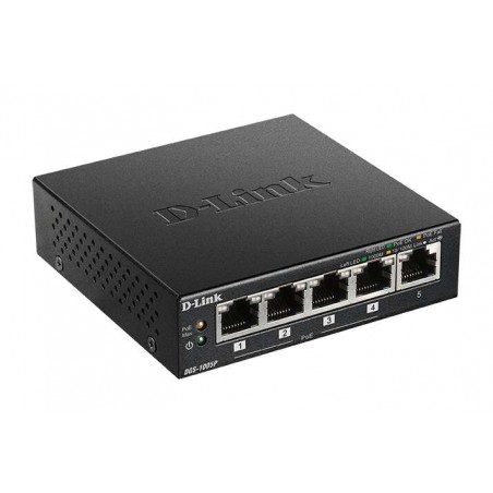 Switch Poe+ Gigabit Ethernet veloce D-Link. Compatto. Comodo. Lo switch Gigabit a 5 porte D?Link DGS?1005P consente di connettersi alla rete dati e alimentare dispositivi Power over Ethernet (PoE) come punti di accesso Wi-Fi (AP), telecamere di sorveglianza IP e telefoni IP. È un interruttore compatto, con involucro metallico e funziona silenziosamente. È Plug & Play, quindi non è richiesta alcuna conoscenza tecnica. Prestazioni Gigabit. DGS-1005P ha un''installazione plug-and-play e non richiede configurazione. Il supporto automatico MDI/MDI-X su tutte le porte elimina la necessità di cavi incrociati durante la connessione a un altro switch, mentre la negoziazione automatica su ciascuna porta regola in modo intelligente la velocità della porta per supportare il dispositivo collegato. Alimentazione tramite Ethernet+ 60 W in totale (budget energetico). È possibile collegare dispositivi compatibili PoE al DGS-1005P per eliminare la necessità di collegarli a una presa elettrica, riceveranno alimentazione tramite il cavo di rete dati dallo switch. Tecnologia verde. DGS-1005P è dotato di tecnologia ecologica come IEEE 802.3az Energy-Efficient Ethernet (EEE), rilevamento dello stato del collegamento e rilevamento della lunghezza del cavo. L''EEE regola il consumo energetico dello switch in base all''utilizzo della rete, riducendo il consumo energetico durante i periodi di inattività. Il rilevamento dello stato del collegamento spegne le porte inutilizzate, risparmiando energia quando i dispositivi collegati vengono spenti o disconnessi. Il rilevamento della lunghezza del cavo regola l''uscita di potenza della porta in base alla lunghezza del cavo, riducendo i requisiti di alimentazione dello switch. Compatto e silenzioso Il design compatto del DGS-1005P ne consente il posizionamento nella maggior parte dei luoghi, compresi quelli in cui lo spazio è limitato. Il formato desktop fornisce tutto il necessario per configurare una nuova rete o espandere una rete esistente, mentre il design senza ventola garantisce un funzionamento silenzioso anche in aree sensibili al rumore come postazioni di lavoro e sale riunioni. Caratteristiche: -PoE: alimentazione per punti di accesso, telefoni e telecamere IP. -PoE+, budget energetico di 60 W. -5 porte Gigabit, quattro delle quali PoE+. -Semplicità Plug & Play, senza gestione. -Involucro in metallo per alta affidabilità. Specifiche: Generale: -Interfacce: 5 porte 10/100/1000BASE-T -Standard: IEEE 802.3 10BASE-T Ethernet (doppino intrecciato in rame) ? IEEE 802.3u 100BASE-TX Fast Ethernet (doppino intrecciato in rame) ? Gigabit Ethernet IEEE 802.3ab 1000BASE-T ? Controllo di flusso IEEE 802.3x ? QoS IEEE 802.1p? Negoziazione automatica ANSI/IEEE 802.3 NWay - Condivisione dell''interfaccia multimediale: regolazione automatica di MDI/MDI-X su tutte le porte. Prestazioni: - Struttura di commutazione: 10 Gbps - Metodo di trasmissione: salvataggio e invio - Velocità di trasferimento dati: Gigabit Ethernet ? 2000 Mbps (full duplex) ? Internet veloce? 100 Mbps (half-duplex), 200 Mbps (full-duplex) ? Ethernet? 10 Mbps (half-duplex), 20 Mbps (full-duplex) -Velocità di filtraggio/inoltro pacchetti: 7,44 Mpps -Tabella indirizzi MAC: 2K voci per dispositivo -Buffer RAM: 64 KB per dispositivo PoE: -Standard PoE: IEEE 802.3af ? IEEE 802.3at -Porte compatibili Poe: porte da 1 a 4 -Consumo energetico: 60 W (30 W max. per porta PoE) Caratteristiche fisiche: -LED: Alimentazione / PoE max. (per unità), Alimentazione/Stato (per porta), Attività/Link e Velocità (per porta) -Peso: 0,26 kg -Dimensioni: 100 x 98 x 28 mm -Ingresso CC: adattatore di alimentazione esterno 53,5 V / 1,2 A -Consumo energetico: 64,5 W massimo (PoE attivato) ? 3,08 W massimo (PoE disabilitato) ? 0,54 W (standby) -Temperatura operativa: da 0 a 40 °C ? Stoccaggio: da -10 a 70 °C -Umidità operativa: da 0% a 95% di umidità relativa senza condensa ? Stoccaggio: da 0% a 95% RH senza condensa Certificazioni: -Sicurezza: cUL, CB, LVD, BSMI -EMI/EMC: CE, BSMI, FCC, VCCI, RCM
